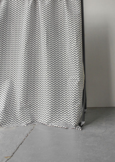 Natural Linen Fabric printed with Grey, bold zig-zag pattern for modern interiors! Medium weight fabric.