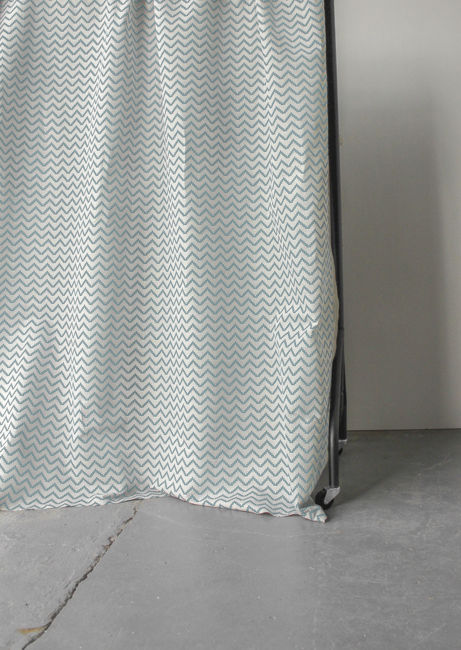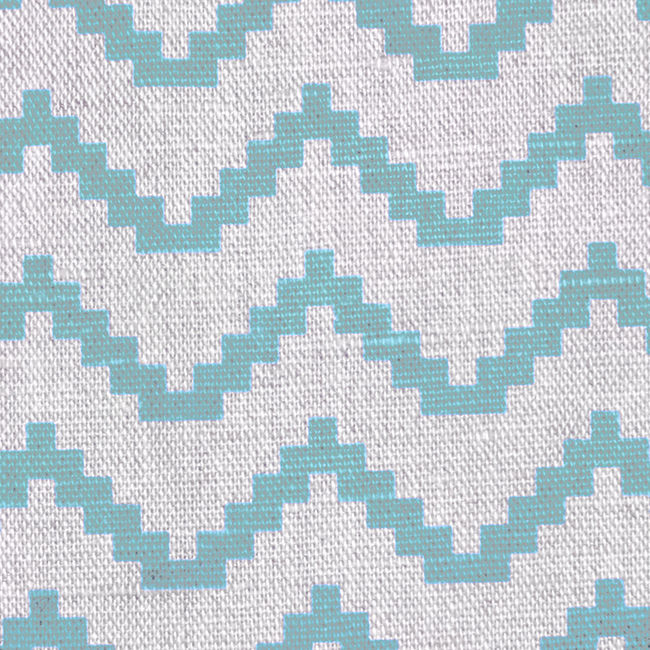 Natural Linen Fabric printed with Duck Egg Blue, bold zig-zag pattern for modern interiors! Medium weight fabric.