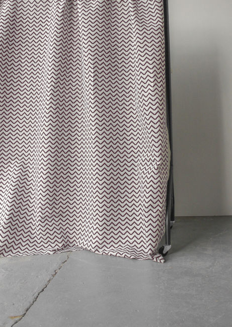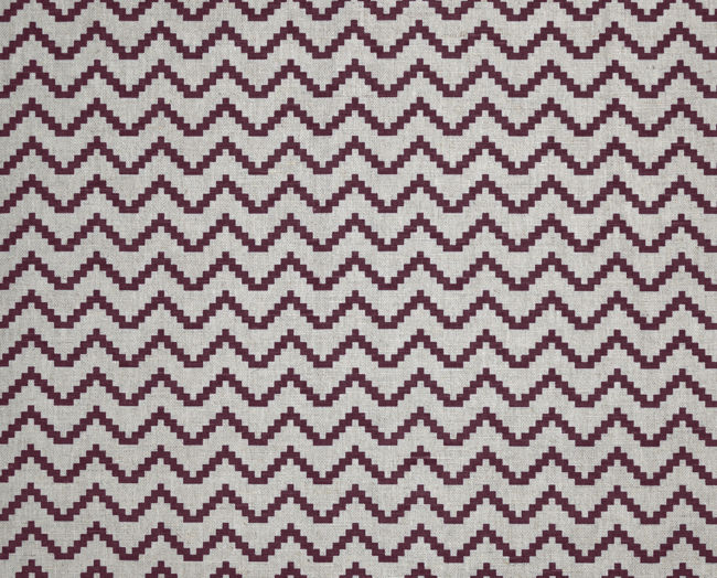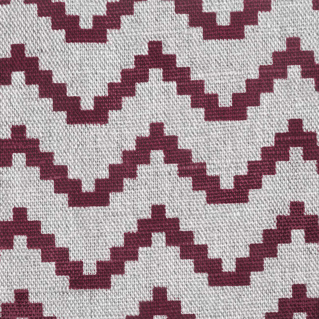 Natural Linen Fabric printed with Wine Red, bold zig-zag pattern for modern interiors! Medium weight fabric.
