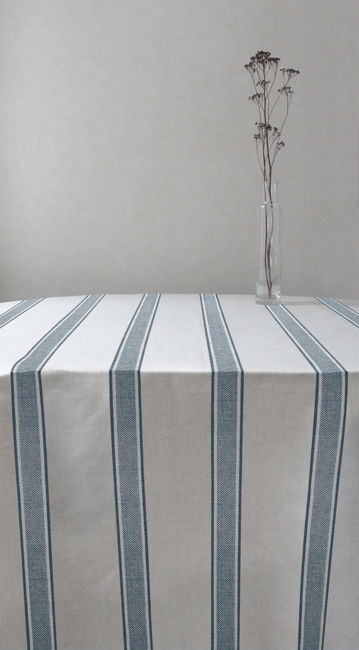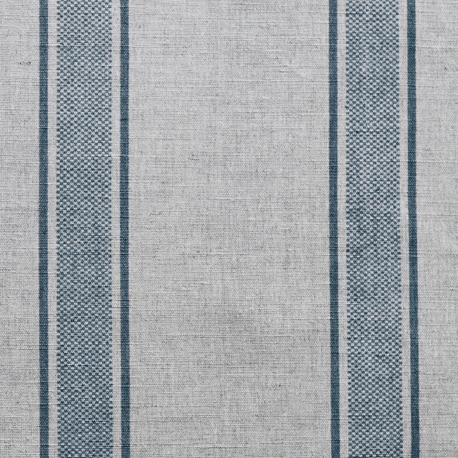 Natural Linen Fabric printed with Blue stripes. Medium weight fabric.