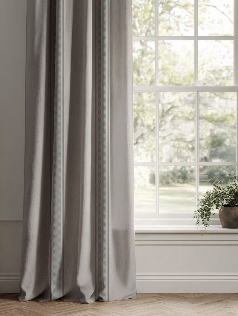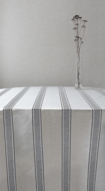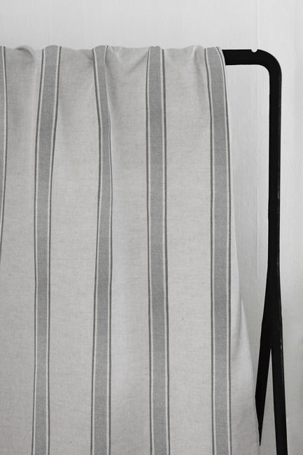 Natural Linen Fabric printed with Grey stripes. Medium weight fabric.