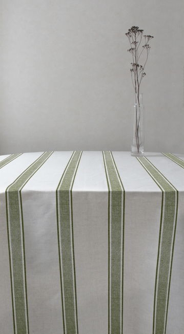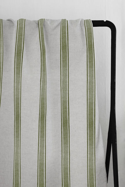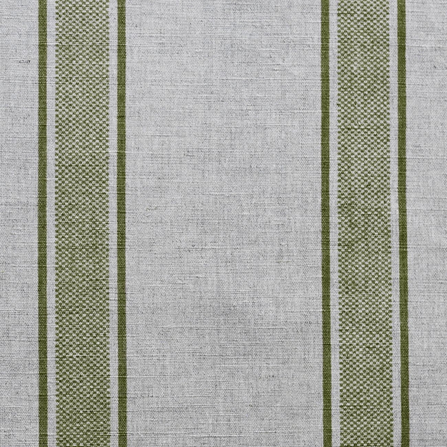 Natural Linen Fabric printed with Green stripes. Medium weight fabric.