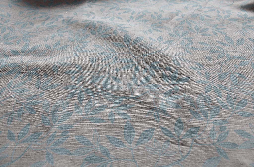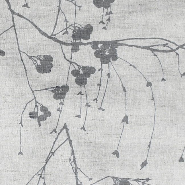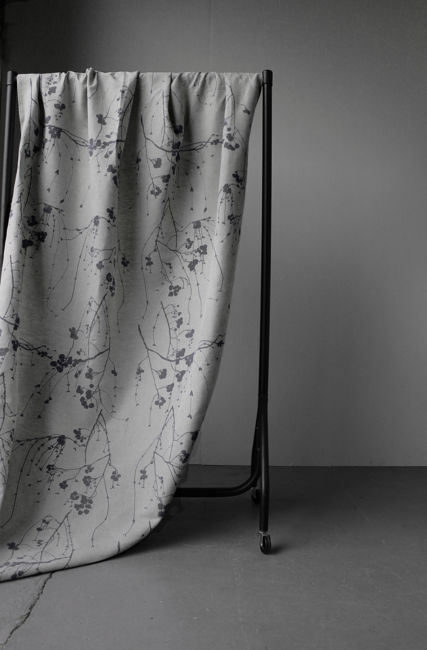 Natural Linen Fabric printed with Grey floral print. Medium weight fabric.