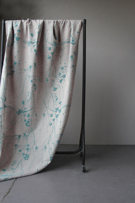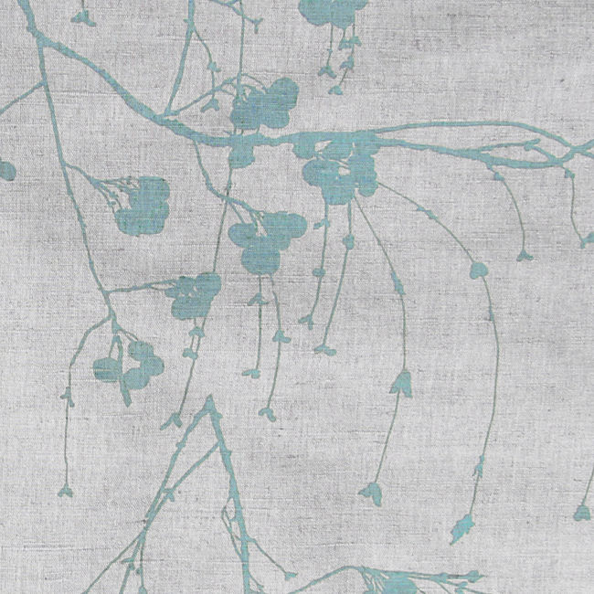 Natural Linen Fabric printed with Duckegg Blue botanical print. Medium weight fabric.