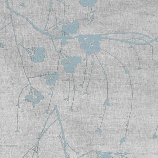 Natural Linen Fabric printed with light Blue botanical print. Medium weight fabric.