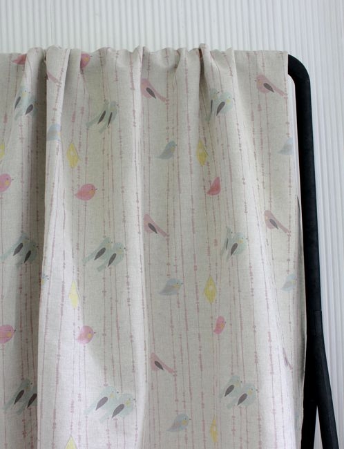 Birds Pink is a Natural coloured linen cotton fabric with a chirpy bird pattern. And why not order curtains to the living room without the birds, of our Pearls fabrics!