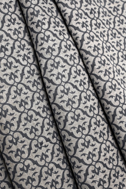 Brita Ash is a Natural Linen Cotton fabric with Grey print. Medium weight fabric.