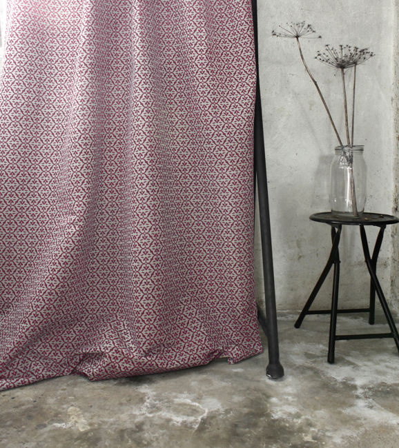 Brita Cherry is a Natural Linen Cotton fabric with Red print. Medium weight fabric.