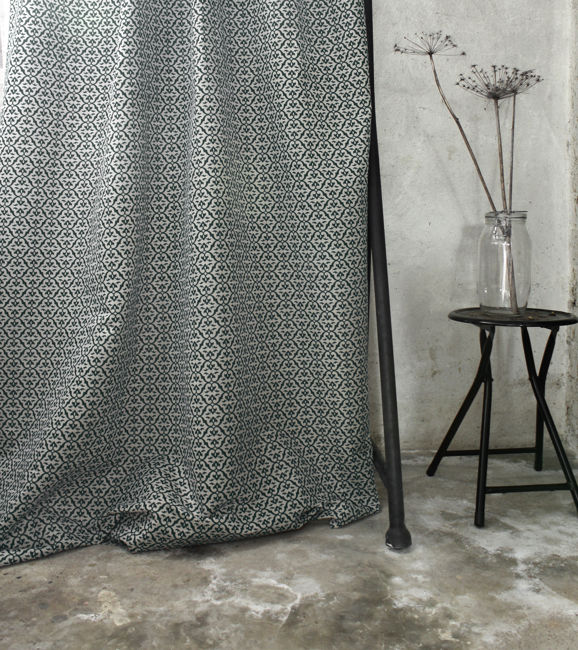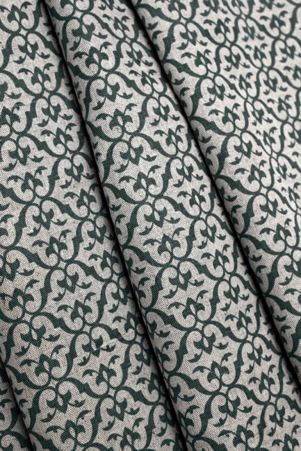 Brita Dark Pine is a Natural Linen Cotton fabric with Dark Green print. Medium weight fabric.