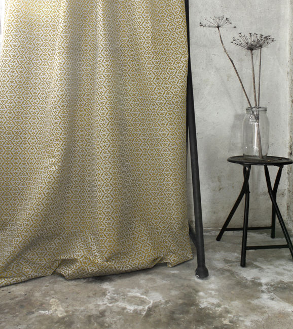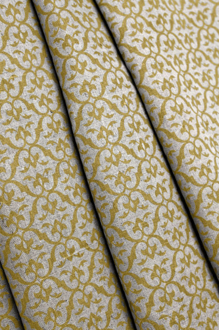 Brita Mustard is a Natural Linen Cotton fabric with Mustard Yellow print. Medium weight fabric.