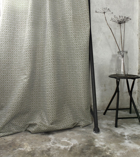 Brita Olive is a Natural Linen Cotton fabric with Olive Green print. Medium weight fabric.