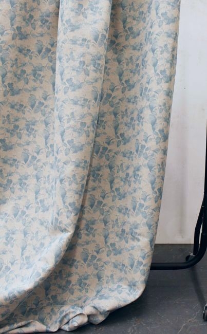 Camila Duck Egg is a Natural Linen Cotton fabric with Light Blue botanical print. Medium weight fabric.