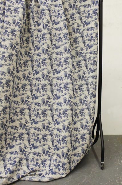 Camila Night Blue is a Natural Linen Cotton fabric with Blue botanical print. Medium weight fabric.