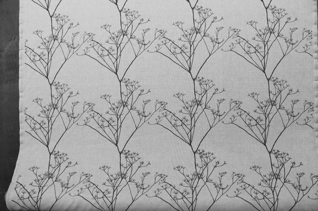 Natural Linen Fabric printed with Black botanical print. Medium weight fabric.