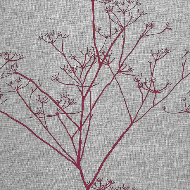 Natural Linen Fabric printed with Red botanical print. Medium weight fabric.