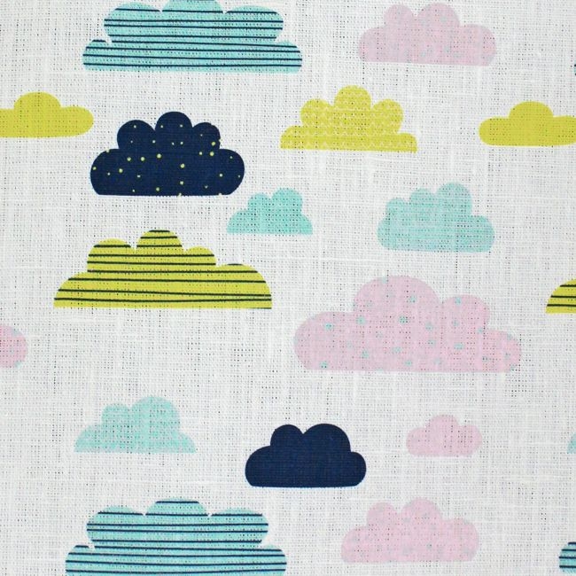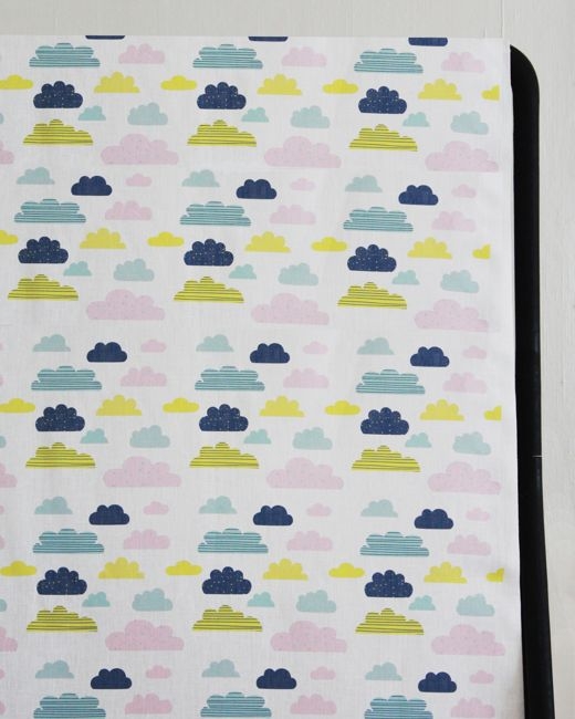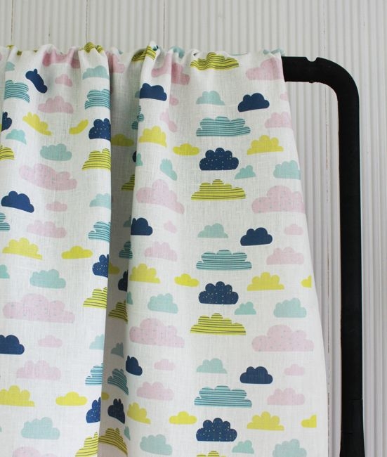 Cloud Dreams Circus is a white linen fabric with colourful soothing clouds that just seem to say sweet dreams!