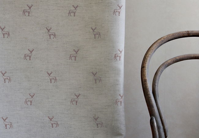 Deer Dusty Pink is a Natural Linen Cotton fabric with a pink pattern of deers. Medium weight fabric.