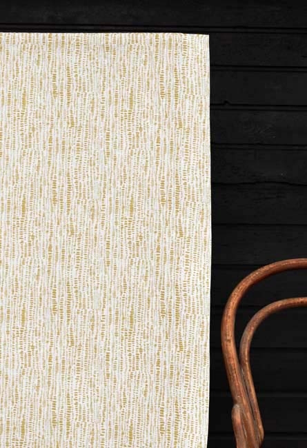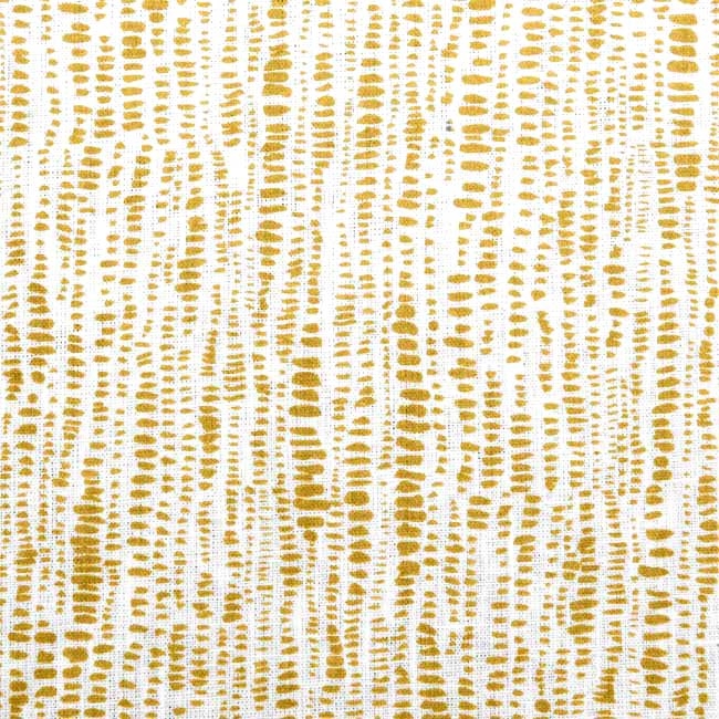 Dora design is printed on a white 100% Linen fabric with Dijon Mustard. Medium weight fabric.