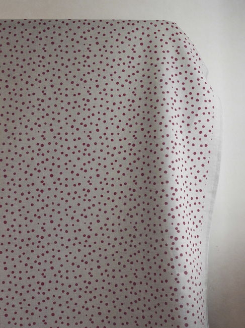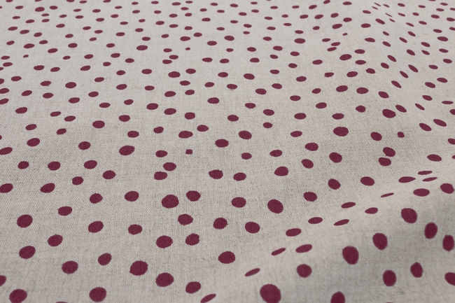 Dottie Cherry is a Natural Linen Cotton fabric with a Red dot pattern. Medium weight fabric.