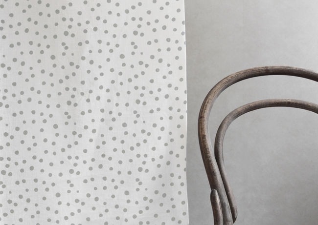 Dottie Greige-WHT is a white 100% Linen fabric with a Grey dot pattern. Medium weight fabric.