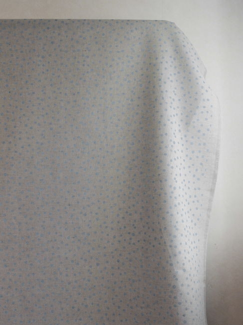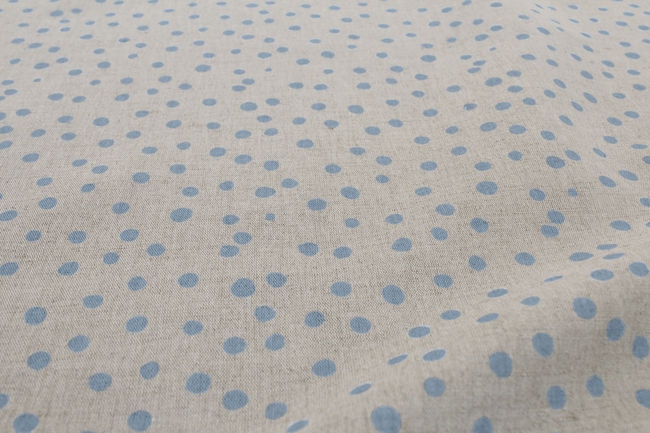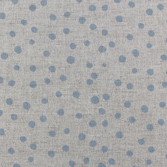 Dottie Sky is a Natural Linen Cotton fabric with Blue dot pattern. Medium weight fabric.