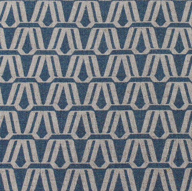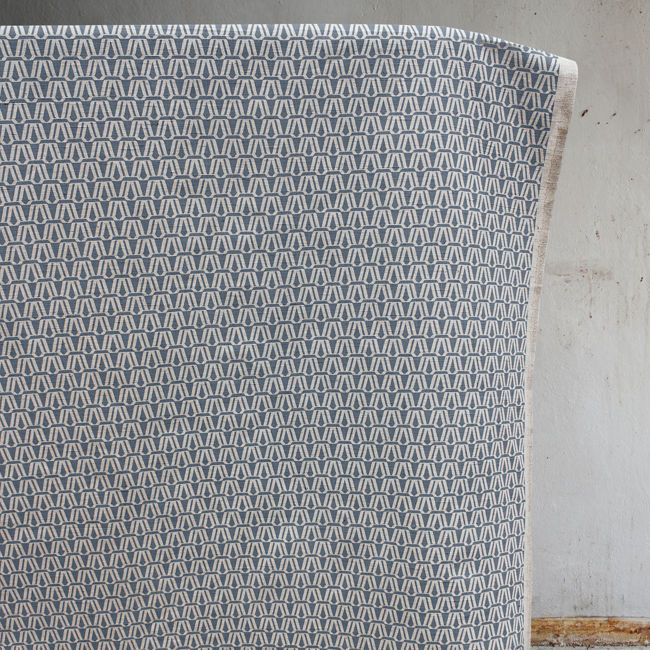 Blue contemporary print on Natural Linen fabric. Medium weight fabric.