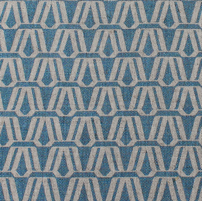 Blue contemporary print on Natural Linen fabric. Medium weight fabric.