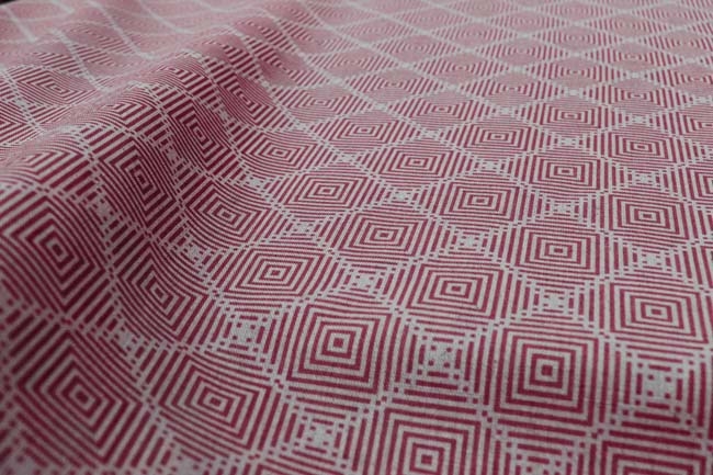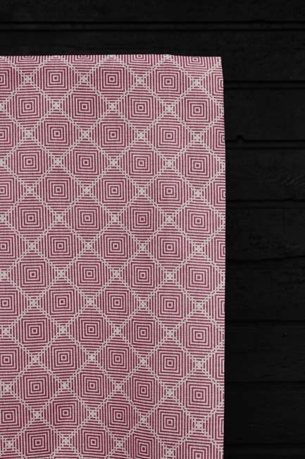 Natural Linen Cotton fabric printed with Red. Medium weight fabric.