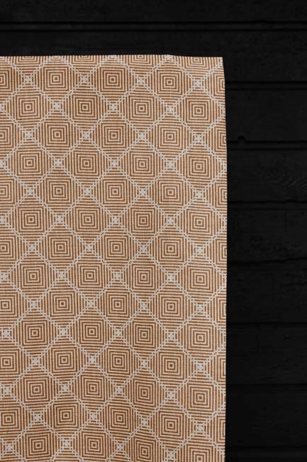 Natural Linen Cotton fabric printed with Tangerine Orange. Medium weight fabric.