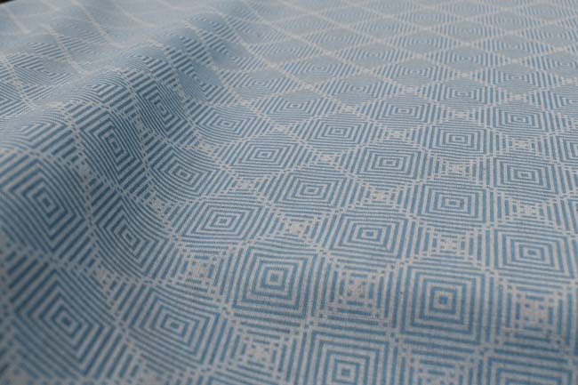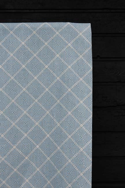Natural Linen Cotton fabric printed with Blue. Medium weight fabric.