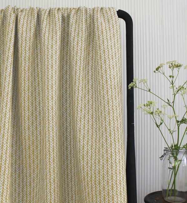 Fia Dijon is a white linen fabric with abstract Yellow pattern. Medium weight fabric.
