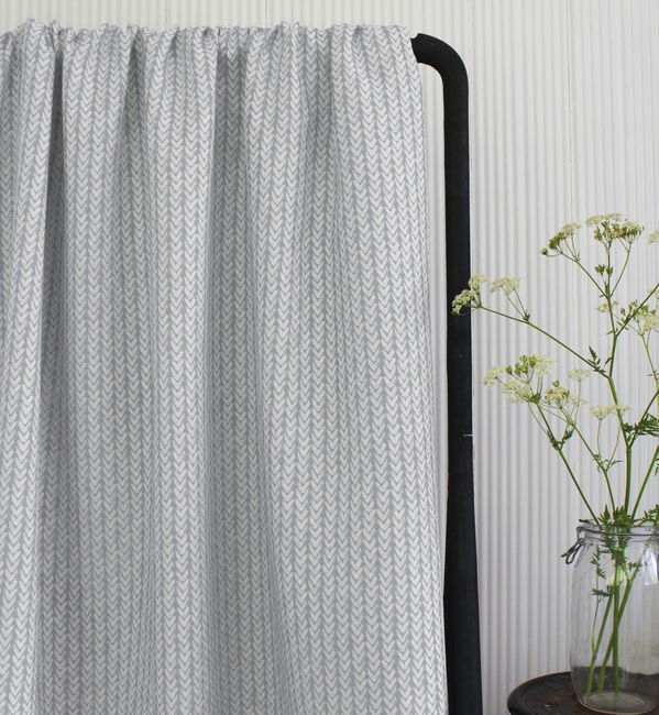 Fia Greige is a white linen fabric with abstract Grey pattern. Medium weight fabric.