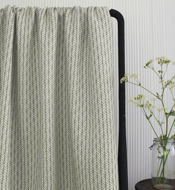 Fia Moss is a white linen fabric with abstract Green pattern. Medium weight fabric.
