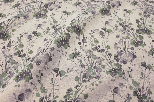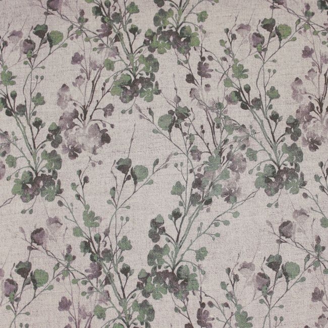 FlowerBliss Olive is a Natural Linen Cotton fabric with Green and grey floral print. Medium weight fabric.