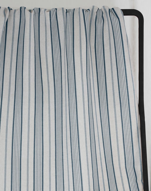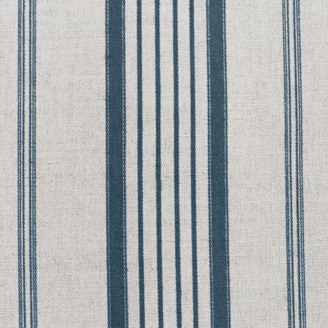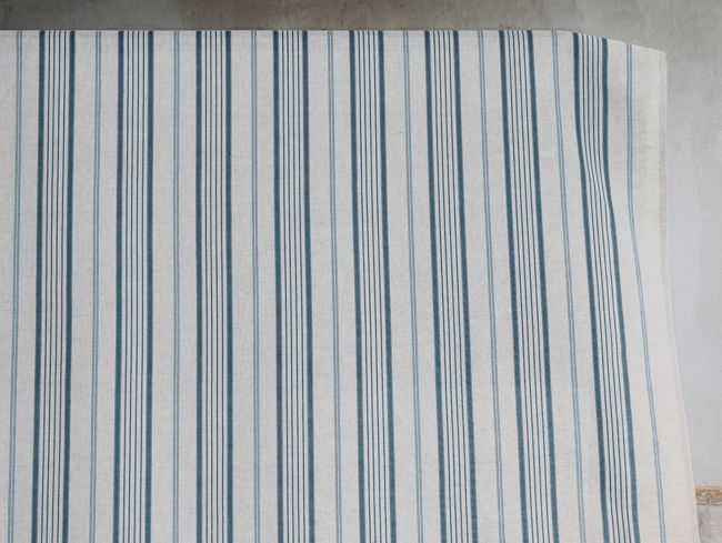 Natural Linen Fabric printed with Blue stripes. Medium weight fabric.