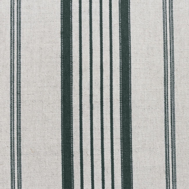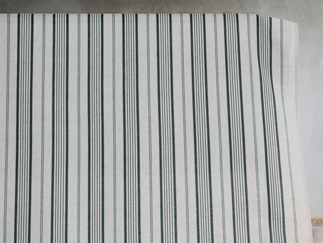 Natural Linen Fabric printed with Dark Green stripes. Medium weight fabric.