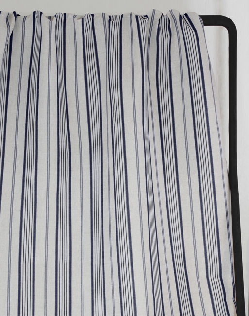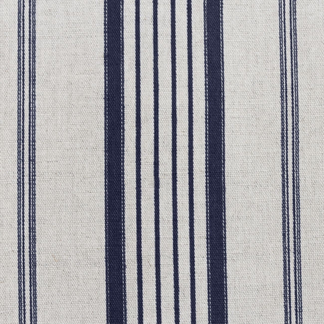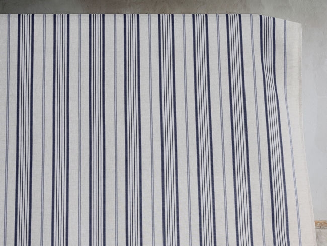 Natural Linen Fabric printed with Dark Blue stripes. Medium weight fabric.