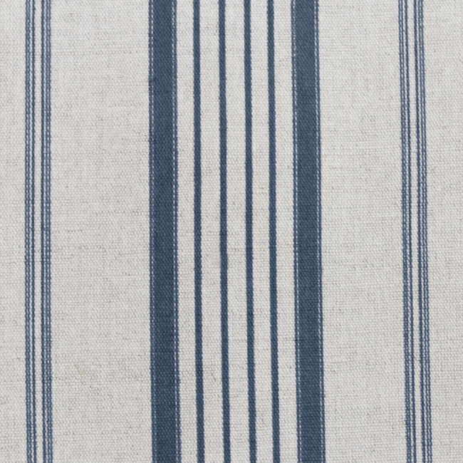 Natural Linen Fabric printed with Blue stripes. Medium weight fabric.