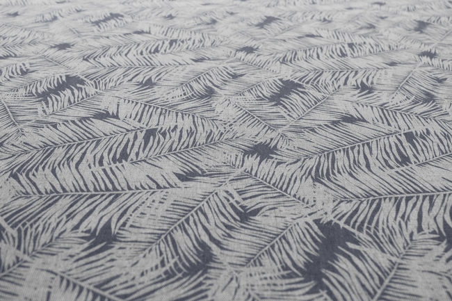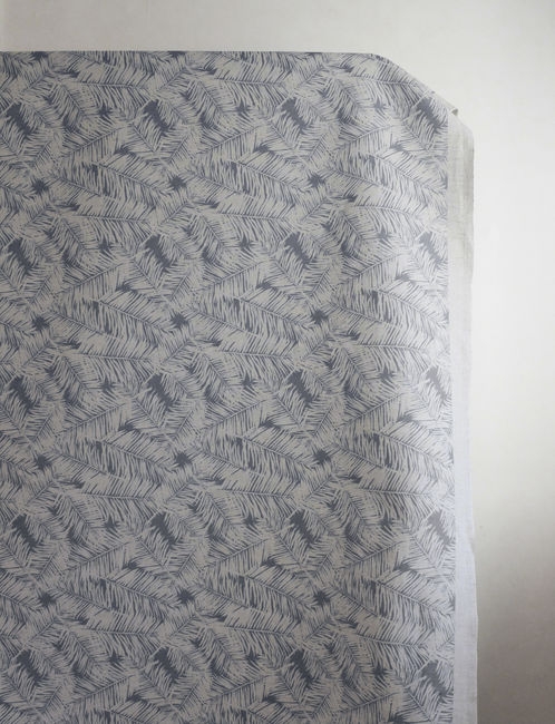 Gabi Ash is a Natural Linen Cotton fabric with a Grey botanical leaf pattern. Medium weight fabric.