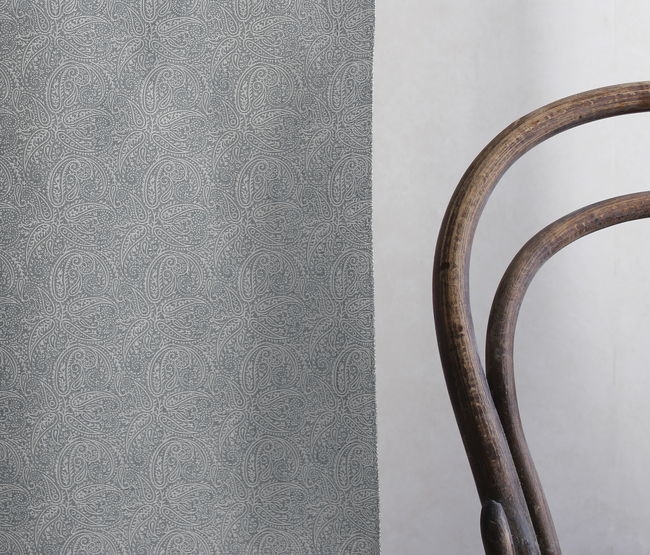 Gigi Greige is a white 100% linen fabric with a grey classic Paisley print. Medium weight fabric.