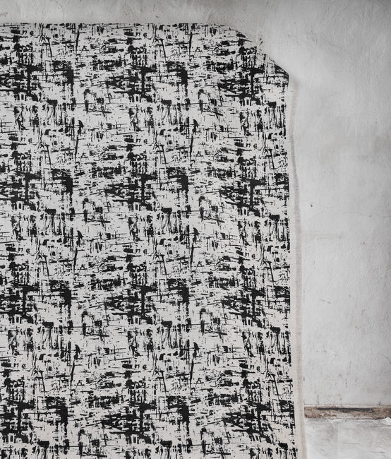 Grunge Black is a Natural Linen Cotton fabric with an abstract Black pattern. Medium weight fabric.