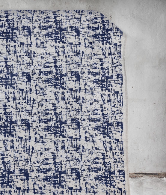 Grunge Night Blue is a Natural Linen Cotton fabric with an abstract Blue pattern. Medium weight fabric.