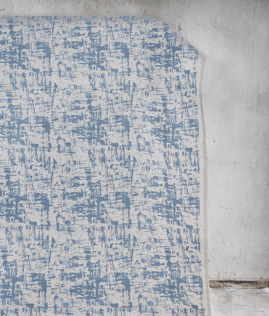 Grunge True Blue is a Natural Linen Cotton fabric with an abstract Blue pattern. Medium weight fabric.