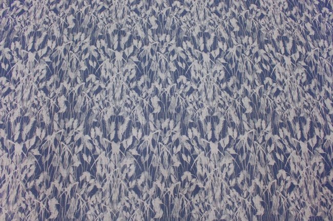 Hay Denim is a Natural Linen Cotton fabric with Blue botanical print. Medium weight fabric.