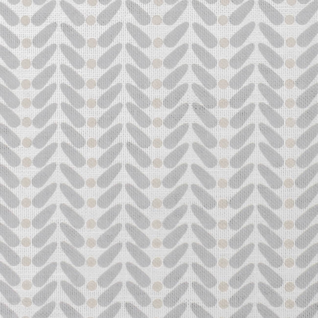 White Linen Fabric printed with Beige and Grey. Medium weight fabric.