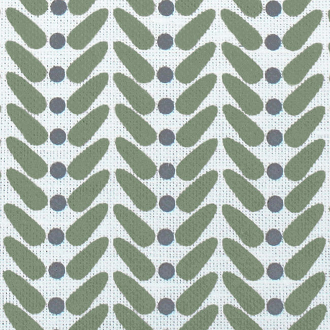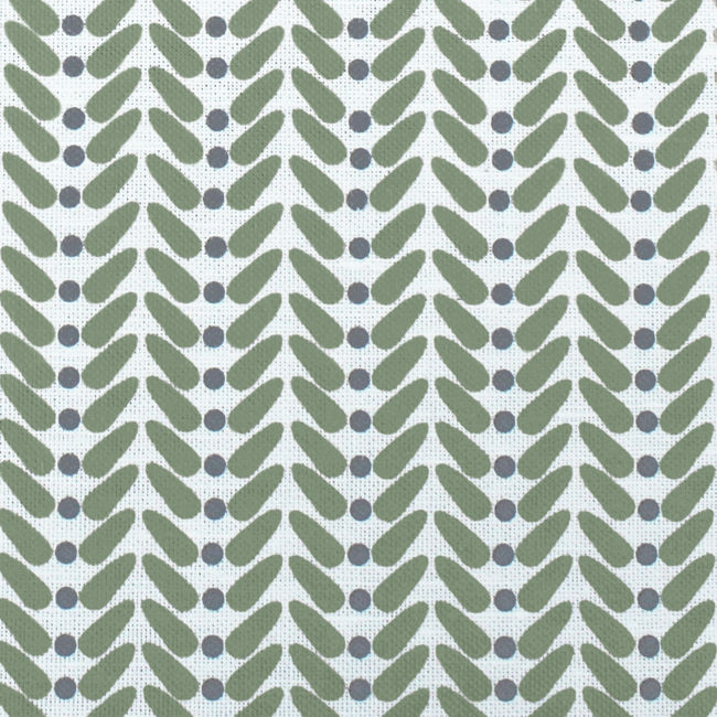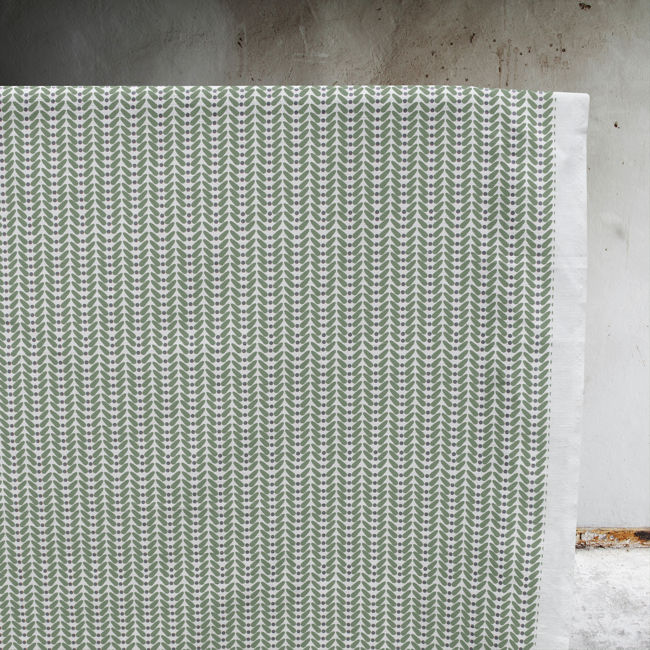 White Linen Fabric printed with Green and Grey. Medium weight fabric.