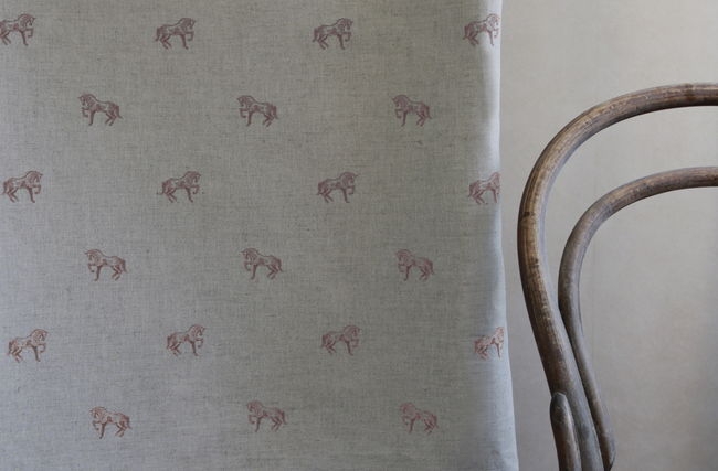 Horse Dusty Pink is a Natural Linen Cotton fabric with a pink horse pattern. Medium weight fabric.