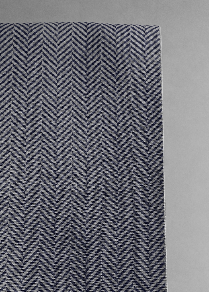 Natural Linen Cotton fabric printed with herringbone pattern. Medium weight fabric.