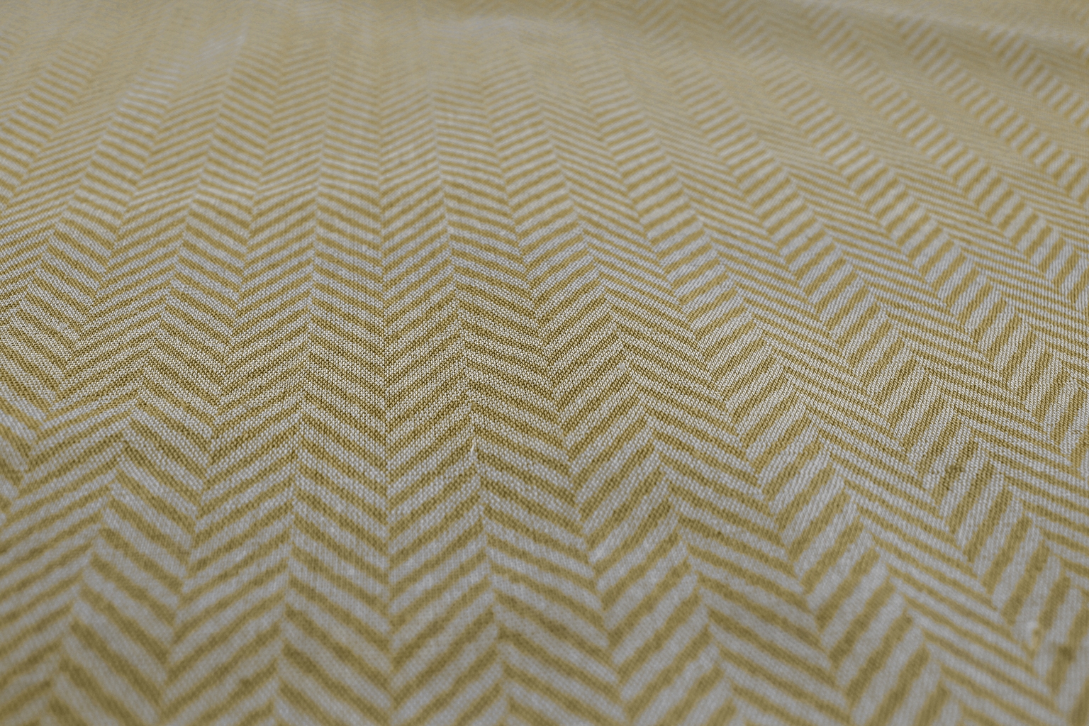 Natural Linen Cotton fabric printed with herringbone pattern. Medium weight fabric.