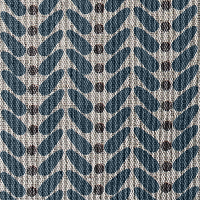 Natural Linen Cotton fabric printed with Blue and Grey. Medium weight fabric.